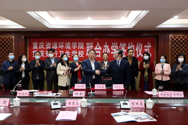 会上,重庆资源与环境保护职业学院校长黄耀五与重庆知行卫生职业学校校长黄吉庆签订了联合办学框架协议。