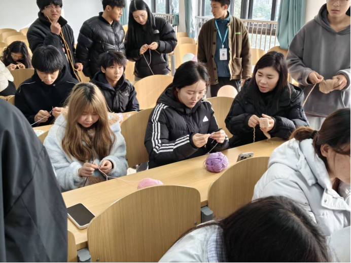 动静皆宜,方显生活多彩。当运动的汗水挥洒过后,静谧的手工时光带来了另一种治愈。12月10日成为“巧手日”。午后,“巧手编织”手绳DIY活动让同学们沉浸在一绳一线的缠绕中,编织出独一无二的情谊信物。随后,“巧手寄情,暖冬织梦”织围巾活动则让传统技艺走进课堂。从生疏到熟练,毛线在指间渐渐成型,不仅织出了抵御寒风的温暖,更编织了同窗之间互帮互助的暖意。这两场活动,让耐心、创意与分享,在指尖悄然传递。