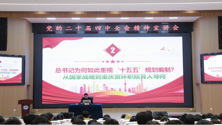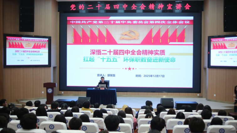12月17日下午,重庆资源与环境保护职业学院举行党的二十届四中全会精神专题宣讲报告会。校党委副书记郜发磊以“深悟二十届四中全会精神实质,扛起‘十五五’奋进新使命”为主题,为师生代表带来内涵深刻的宣讲,紧密结合学校生态环保特色办学定位,推动全会精神与职业教育实践深度融合。